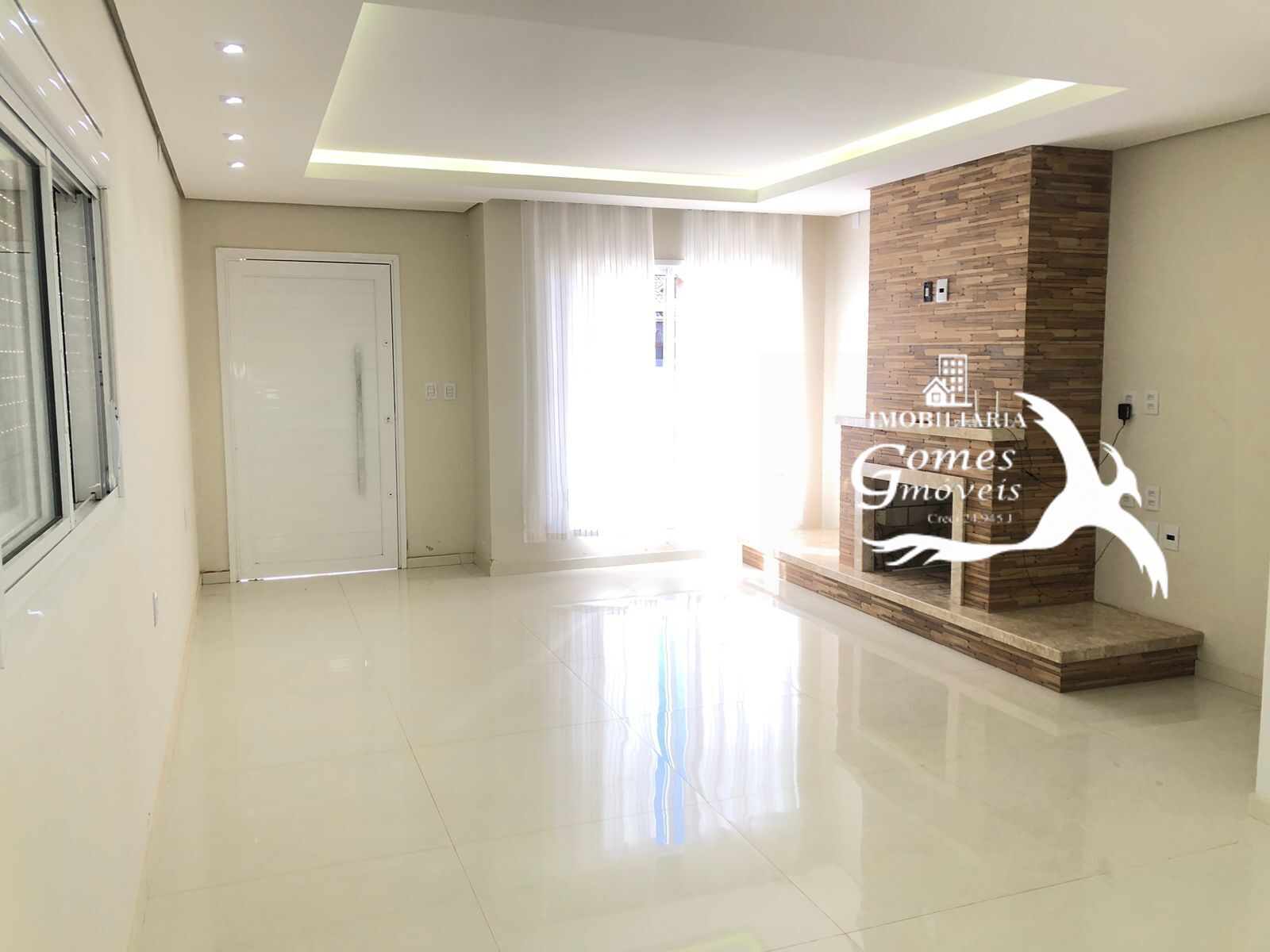 Com 2 dormitórios, banheiro, sala de estar com lareira e cozinha.