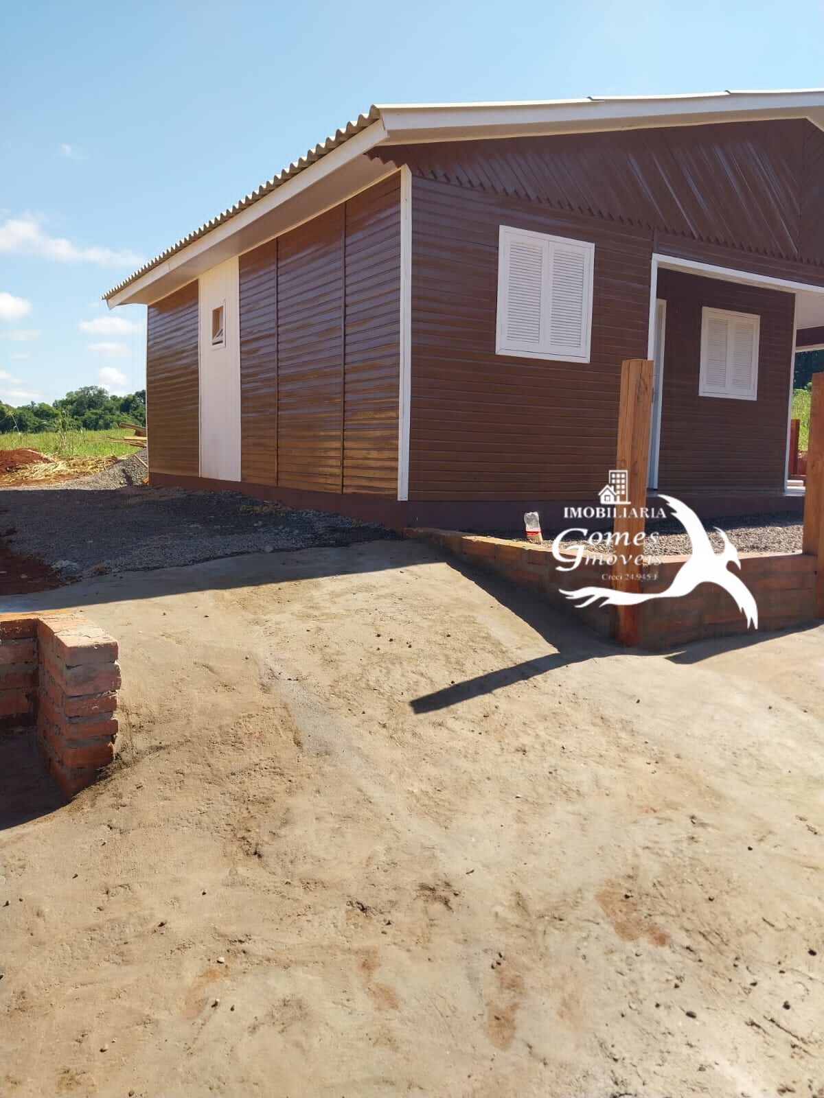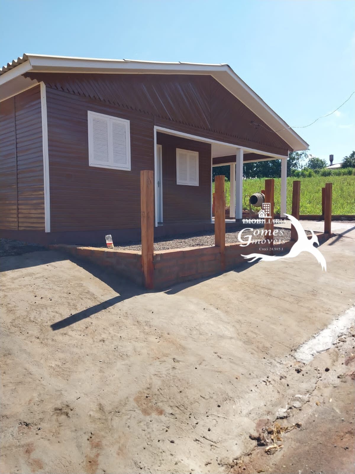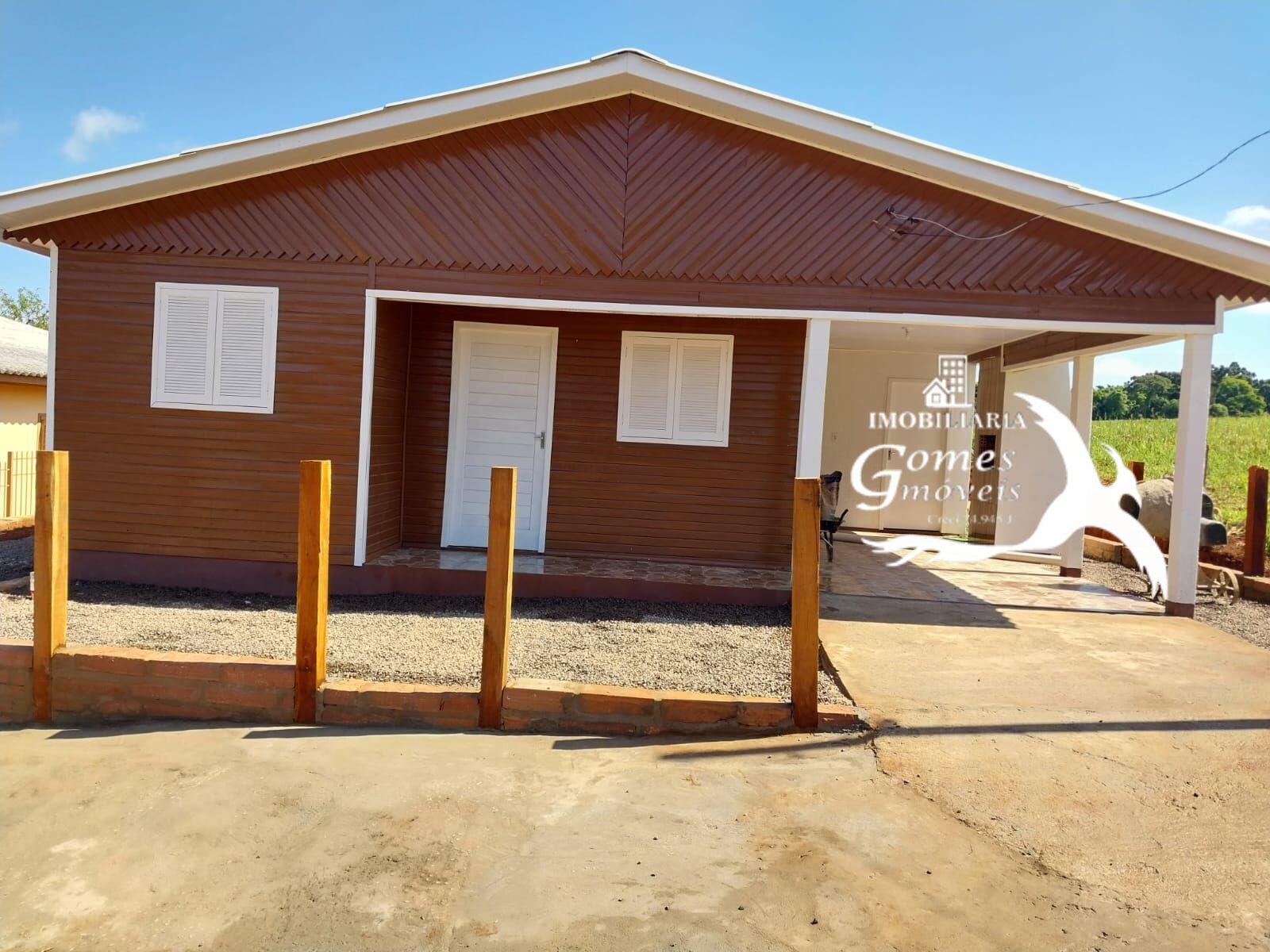 Com 2 quartos, banheiro, sala, cozinha, área de serviço e garagem com churrasqueira.